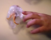 Também usámos como modelo o dinossauro e fizemos pegadas no barro.