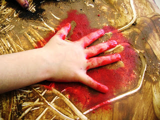 Pintámos as mãos com carvão e giz misturado com óleo.