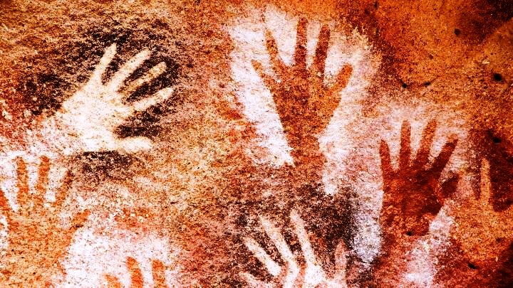 Os Homens pré-históricos usavam pó colorido de rochas, depois  sopravam através de um canudo, sobre a mão pousada na parede da caverna. A região em volta da mão ficava colorida e a parte coberta, não.